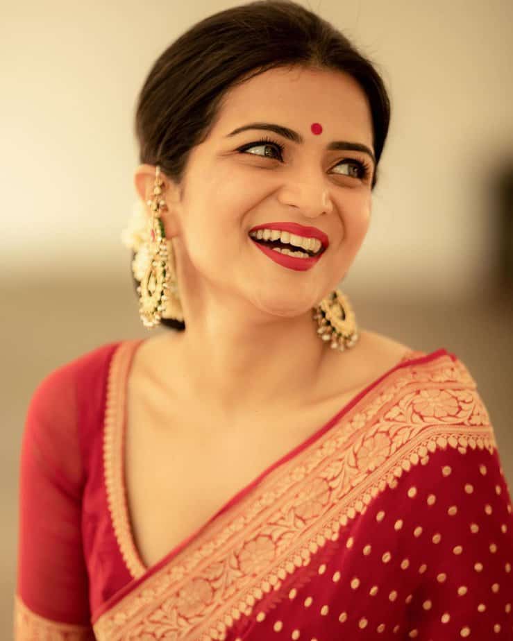 இதனால் DD ரசிகர்கள் ஷாக் ஆகித்தான் கிடக்கிறார்கள். சமீபகாலமாக வீடியோக்களை அதிகமாக வெளியிட்டு வரும் திவ்யதர்ஷினி, தன்னுடைய உடலழகை சிவப்பு நிற சேலை கட்டி எடுப்பாக காட்டி போட்டோக்கள் சிலதை வெளியிட்டு உள்ளார்.