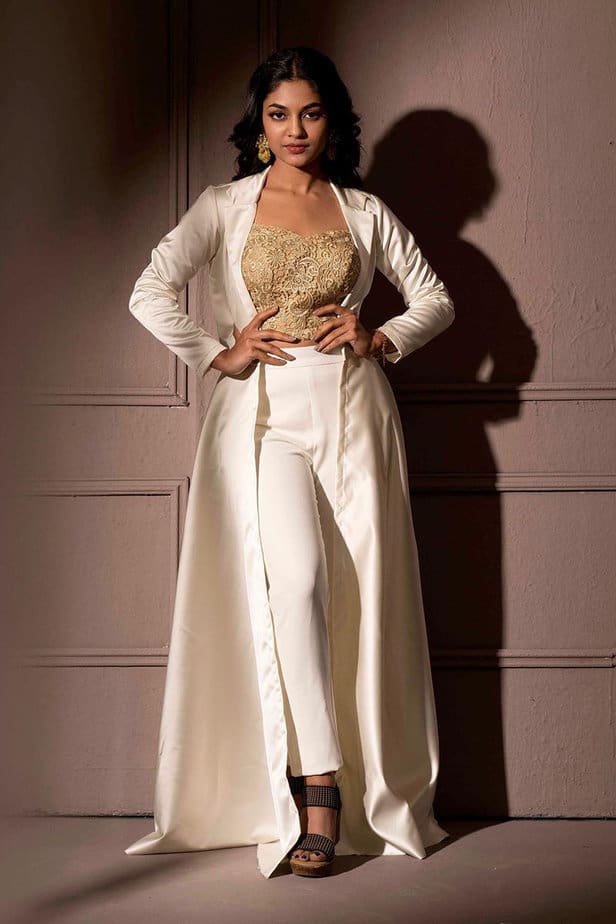 அதன்படி தற்போது இவர் வெளியிட்டு இருக்கக்கூடிய புகைப்படத்தில் வெள்ளை நிற பாவாடை அணிந்து அதற்கு மேட்ச் ஆக வெள்ளையில் தங்கத்தால் இளைத்தது போல ஒரு பிளவுஸையும் போட்டு வெண் நிற தேவதையாய் காட்சியளிக்கிறார்.இதைப் பார்த்த ரசிகர்கள் அனைவரும் ஸ்ட்னிங், ஸ்மார்ட் போன்ற பல ஒற்றை வார்த்தை கமெண்ட்களை போட்டு அவரை திணறடித்து வருகிறார்.ஒரு மார்க்கமாக காட்சி அளிக்கக்கூடிய இந்த புகைப்படத்தில் ரசிகர்களின் லைக் வெள்ளத்தில் இவர் தற்போது மிதந்து கொண்டிருக்கிறார் என்று கூறலாம்.