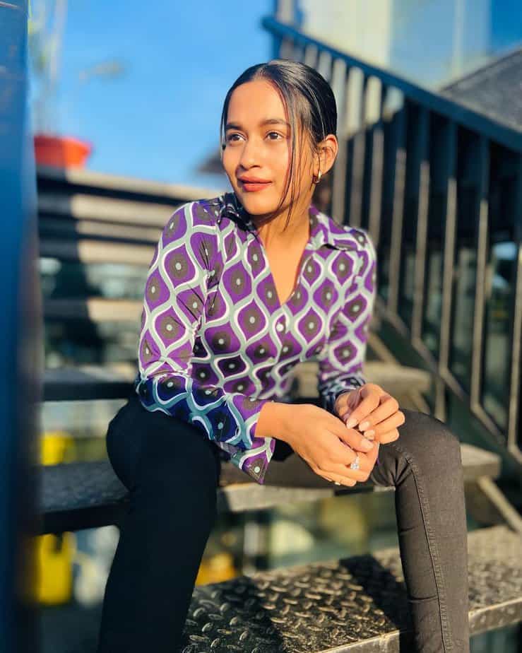 மேலும், காவ்யா அறிவுமணி மாடர்ன் உடையில் முன்னழகு பின்னழகை எடுப்பாக காட்டி போட்டோஷூட் செய்து அதனை தனது இன்ஸ்டாகிராம் பக்கத்தில் ஷேர் செய்துள்ளார். இதனை பார்த்த ரசிகர்கள், காவ்யா அறிவுமணியின் அங்க அழகை வர்ணித்து வருகின்றனர்.