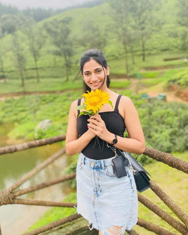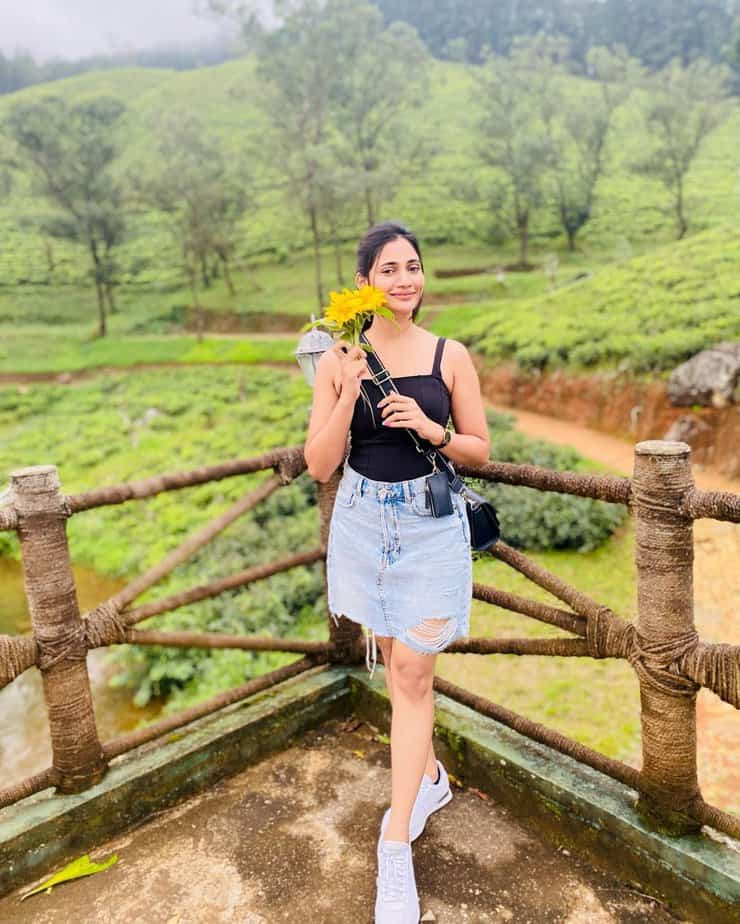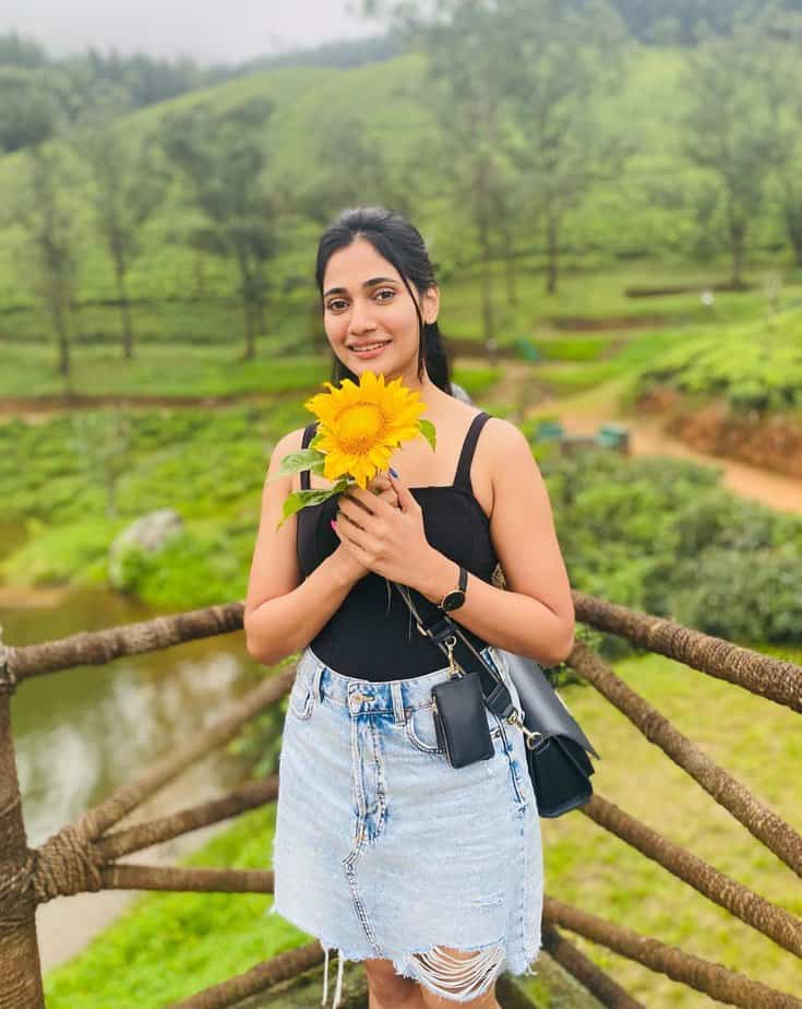 தற்போது லேட்டஸ்டாக இன்ஸ்டாகிராமில் கிழிந்து தொங்கும் குட்டை பாவாடை அணிந்து, கையில் சன் பிளவர் பூவை வைத்து போட்டோ ஷூட் புகைப்படங்களை வெளியிட்டுள்ளார்.அதில் இவரது சொக்கவைக்கும் அழகுடன் இருப்பதை பார்த்த ரசிகர்கள் மனசை பறிகொடுத்து வருகின்றனர்.