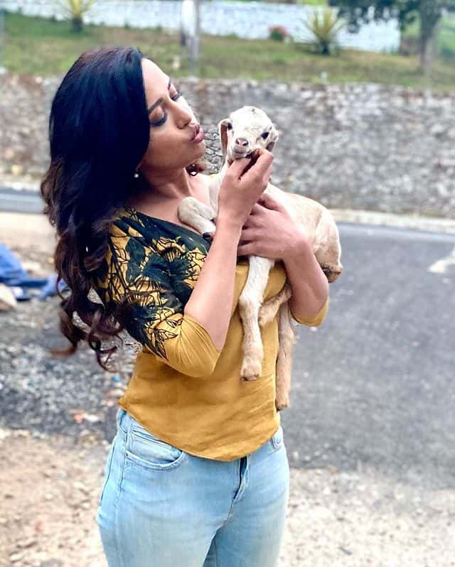 அந்த வகையில், தற்போது டீப் லோ நெக் உடையை அணிந்து கொண்டு ஆட்டுகுட்டி ஒன்றை தூக்கி கொஞ்சி சூட்டை கிளப்பி விட்டு, ரசிகர்களின் தூக்கத்தை கெடுத்துள்ளார் ரைசா.ரைசாவோட ஆட்டுகுட்டி ஒரு Size-ஆ இருக்கு, என்று கிண்டல் செய்கிறார்கள்.