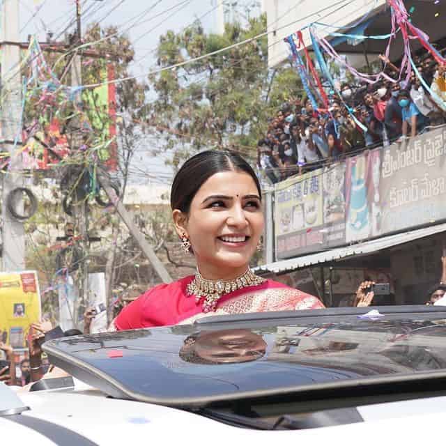 இந்த நிலையில், தெலுங்கானா மாநிலத்தில் நல்கொண்டா இடத்தில் பொது நிகழ்ச்சிக்கு கலந்து கொண்டார். அப்போது அங்கு கூடியிருந்த கூட்டத்திற்கு வெளியே ரசிகர்களின் பார்த்து கைசைத்துள்ளார். இது போன்று தொடர் விளம்பரம் மற்றும் பொது நிகழ்ச்சியின் கொள்வதை தற்போது வாடிக்கையாக்கியுள்ளார் என நெட்டிசன்கள் கூறி வருகின்றனர்.