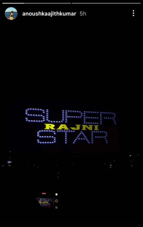 இந்த நிலையில் அஜித்தின் மகளான அனோஷ்கா “கூலி” திரைப்படத்தை பார்த்துள்ளார். தனது இன்ஸ்டா ஸ்டோரியில் அவர் சூப்பர் ஸ்டார் டைட்டில் கார்டை பகிர்ந்துள்ளார். இதன் ஸ்கிரீன்ஷாட் இணையத்தில் வைரல் ஆகி வருகிறது. இது ரஜினிகாந்த் ரசிகர்கஐ உற்சாகத்தில் ஆழ்த்தியுள்ளது.