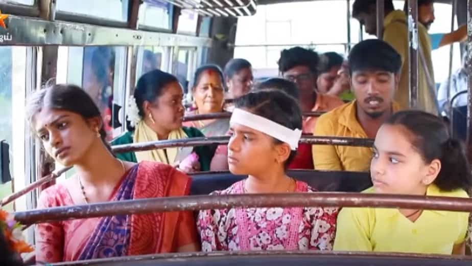 இதனிடையே, வெண்பாவுக்கு ரோகித்துடன் திருமணம் நடந்து விட்டது. ஹேமா & லெட்சுமி இருவரும் பாரதியின் குழந்தைகள் என டிஎன்ஏ ரிசல்ட் வந்து விட்டது. பாரதியின் சந்தேகங்கள் தீர்ந்துவிட்ட நிலையில் குழந்தை ஹேமா, லெட்சுமி இருவரையும் அழைத்து கண்ணம்மா கண் காணாத இடத்திற்கு பேருந்தில் பயணம் செய்கிறார்.