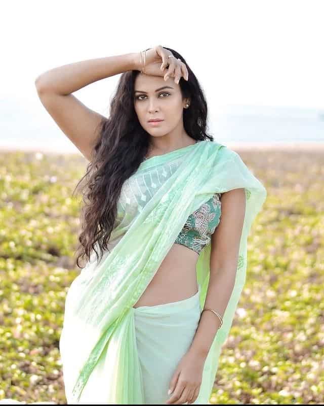 மடிப்பில்லாத இடுப்பு, கச்சிதமா இருக்கு..ஸ்லீவ்லெஸ் சேலையில் திணறடித்த சாந்தினி.. hot pics..!