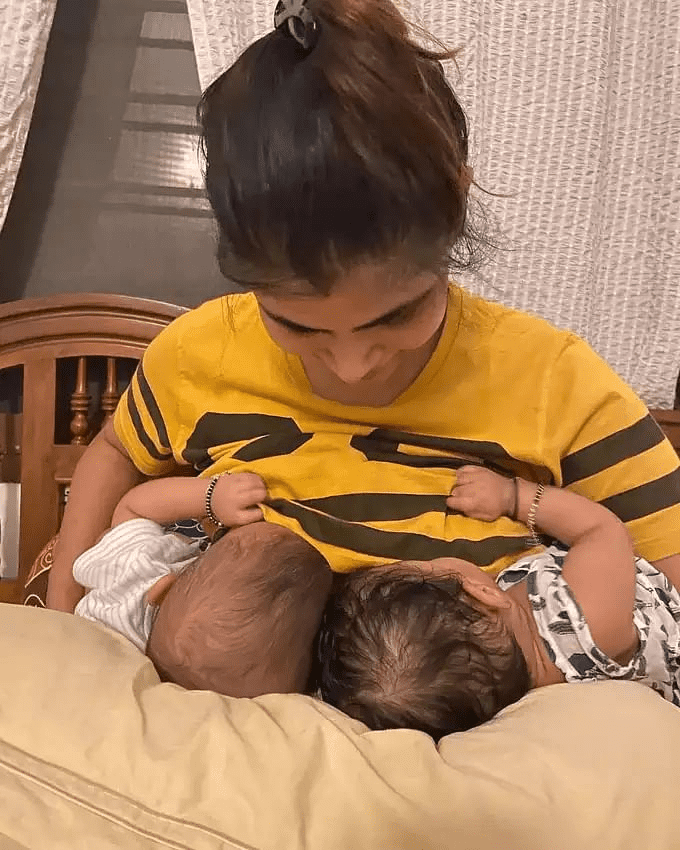 ஒரு பெண், ஒரு ஆண் என பிறந்த குழந்தைகளுக்கு ட்ரிப்டா மற்றும் ஷ்ரவாஸ் என்ற பெயர்களை இன்ஸ்டகிராமில் அறிவித்திருந்தார் சின்மயி.