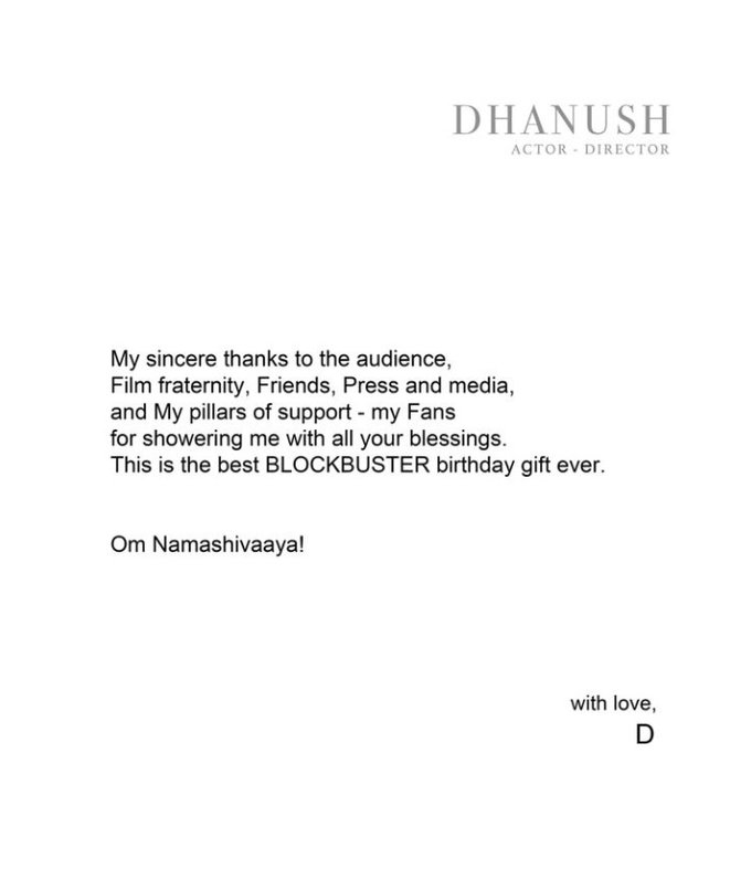 அதேசமயம், இது எனது பிறந்தநாள் பரிசு. இந்த படத்தை பிளாக்பஸ்டர் படமாக்கியதற்காக நடிகர் தனுஷ் ரசிகர்களுக்கு நன்றி தெரிவித்துள்ளார். ஏ சான்றிதலுடன் திரைக்கு வந்து மூன்று நாட்களில் இத்தனை கோடிகள் வசூலித்த முதல் தமிழ் படம் ராயன்தான் என்பது குறிப்பிடத்தக்கது.