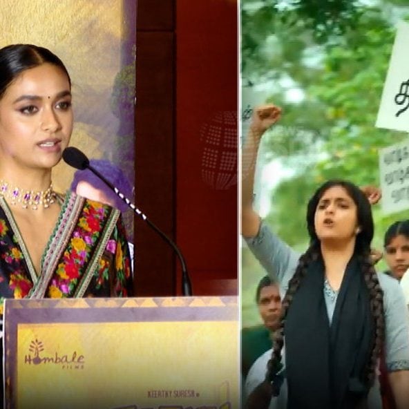 தமிழில் ரகு தாத்தா திரைப்படத்தில் நடித்துள்ளார்.சமீபத்தில் நடந்த ரகு தாத்தா திரைப்படத்தின் இசை வெளியீட்டு நிகழ்வில் பேசிய கீர்த்தி சுரேஷ், “ரகு தாத்தா படத்தின் கதையைக் கேட்டபோது எனக்கு சரியாக வருமா என யோசித்தேன். ஆனால், இயக்குநர் உறுதியாக இருந்தார்.நான் நடித்த ஹிந்திப் படமான பேபி ஜான் டிசம்பர் மாதம் திரைக்கு வரும் நேரத்தில், ஹிந்தி திணிப்புக்கு எதிரான ரகு தாத்தா படத்தில் நடித்திருப்பதைப் பற்றி பலரும் கேட்டனர். இந்த படம் ஹிந்தி எதிர்ப்பை சொல்லும் படம் அல்ல. ஹிந்தி திணிப்பு எதிர்ப்பை பேசுகிறது.அதுமட்டுமல்லாமல் இந்தப் படம் பெண்கள் மீதான திணிப்பை பேசுகிறது. அதில், இயக்குநர் ஹிந்தி திணிப்பை கையில் எடுத்து உடன் பெண்கள் மீதான அடக்குமுறை பற்றியும் சொல்லி இருக்கிறார். நகைச் சுவை கலந்த சமூகப் படமாக உருவாகியுள்ளது. அனைவருக்கும் இப்படம் பிடிக்கும்” எனக் கூறினார்.