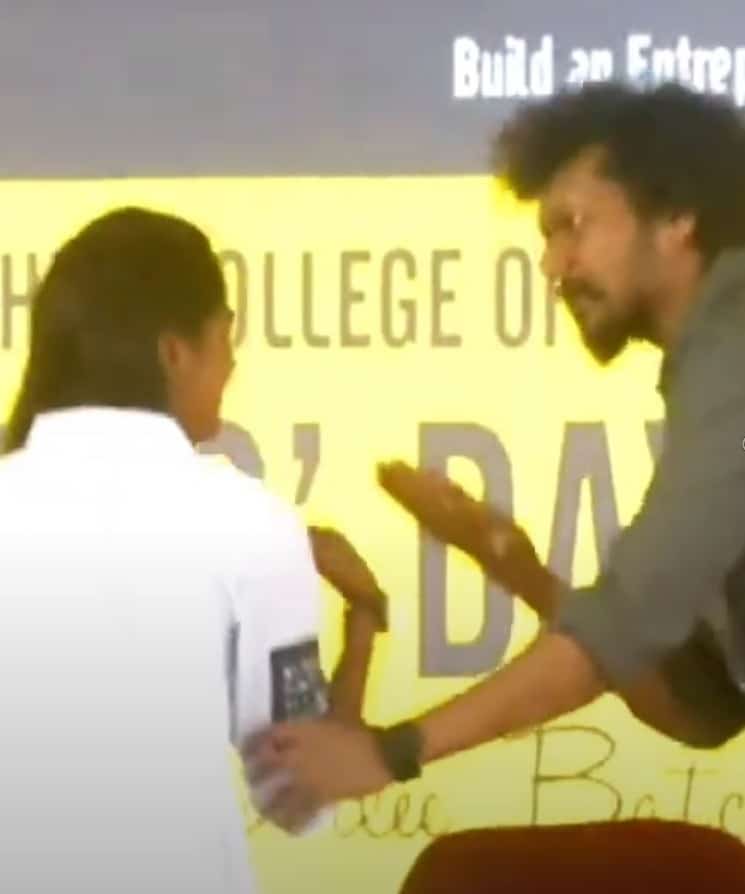 நிகழ்ச்சியில் மாணவர்களுக்கு விருது வழங்கினார். அப்போது ஒரு மாணவி லோகேஷ் கனகராஜ் கையால் விருது வாங்கிக்கொண்டு அவரது காலில் விழுந்து ஆசீர்வாதம் வாங்க முயற்சித்தபோது ஒரு நிமிஷம் செம ஷாக் ஆன லோகேஷ் கனகராஜ் அந்த மாணவியை தூக்கிவிட்டு என்ன இதெல்லாம்? என்றவாறு முறைத்தார். இதே போல் விஜய்யும் கல்வி விருது வழங்கும் விழாவில் மாணவ, மாணவிகளை காலில் விழ விடாமல் தடுத்து நிறுத்தினார் என்பது குறிப்பிடத்தக்கது.