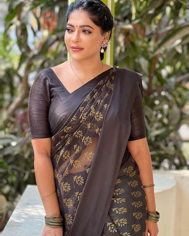 இந்த நிலையில் அடிக்கடி தனது இன்ஸ்டாகிராம் பக்கத்தில் கவர்ச்சியான புகைப்படங்களை பதிவிட்டு ரசிகர்களை குஷிப்படுத்தி வருகிறார். அந்த வகையில் சேலையில் ஹாட் புகைப்படங்களை பதிவிட்டுள்ளார். அதனை பார்த்த ரசிகர்கள் ‘ சேலை கட்டியிருந்தாலும் தொப்புள் தெரியுது’ என கமெண்ட் செய்து வருகின்றனர்.