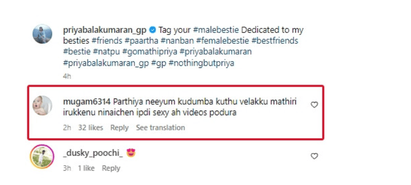 மேலும், ஹோம்லி லுக்கில் சீரியல் ரசிகர்களை தொடர்ந்து கவர்ந்து வரும் கோமதி பிரியா மாடர்ன் உடையில் ஒரு வீடியோவை வெளியிட்டு இருக்கிறார். இதனை பார்த்த ரசிகர்கள் குடும்ப குத்து விளக்காக இருந்த நீங்களா இப்படி ஒரு உடையில் வீடியோ வெளியிட்டது என ஷாக் ரியாக்சன் கொடுத்து கமெண்ட் செய்து வருகின்றனர்.