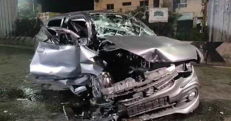 தடுப்பு சுவரில் மோதிய போது கார் ஓட்டுநரின் பகுதி நொறுங்கியது. காரை ஓட்டியது நிதிஷ் என்பதால் அவருக்கு காயம் அதிகமாக ஏற்பட்டதே இறப்பிற்கு காரணம் என கூறப்படுகிறது.