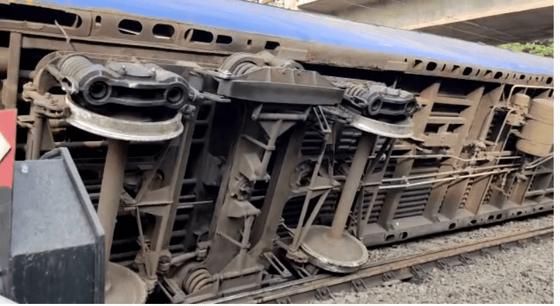 தடம் புரண்ட சரக்கு ரயிலின் போகியை நிறுத்தி போக்குவரத்தை சரி செய்யும் முயற்சியில் ரயில்வே அதிகாரிகள் தீவிரமாக ஈடுபட்டுள்ளனர்.