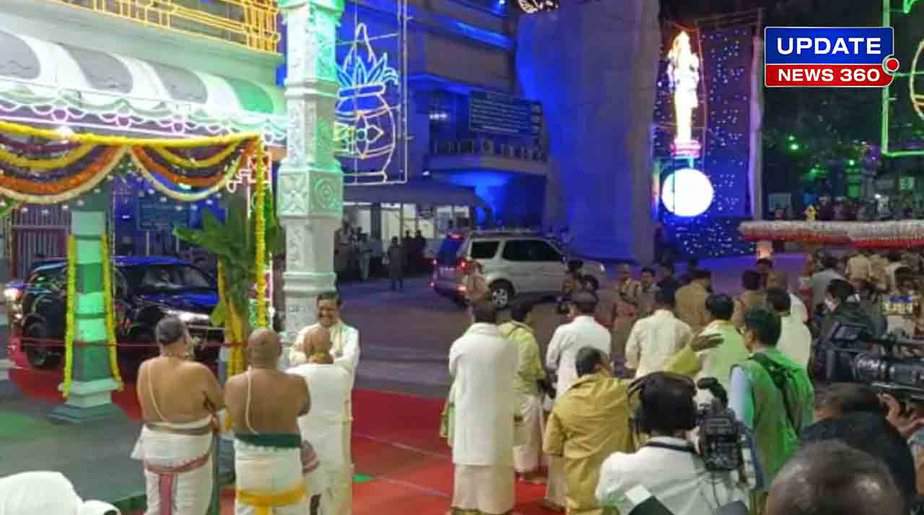 முன்னதாக ஏழுமலையான் கோவில் எதிரில் இருக்கும் ஆஞ்சநேயர் கோவிலுக்கு வந்த அவருக்கு தேவஸ்தான தலைமைச் அர்ச்சகர் பரிவட்டம் கட்டினார்.