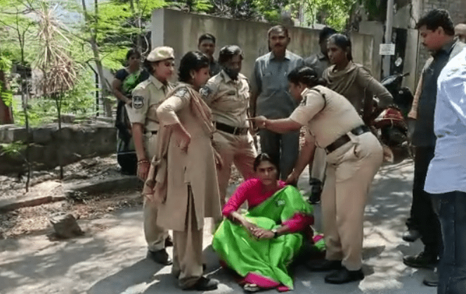 அவர்களுடன் கடும் வாக்குவாதம் செய்த ஒய்எஸ் விஜயம்மா அங்கிருந்த பெண் போலீசாரை தள்ளிவிட்டார். இதனால் தெலுங்கானாவில் பெரும் பரபரப்பு ஏற்பட்டுள்ளது.
