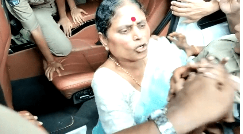 அவரை தடுத்து நிறுத்த அங்கிருந்த பெண் போலீசார் முயன்றனர். ஆனால் அவர்களில் ஒரு போலீஸ் கான்ஸ்டபிளை தள்ளிவிட்ட ஷர்மிளா அவரை தாக்கினார். மேலும் ஒரு போலீஸ் அதிகாரியை தள்ளிவிட்டு அங்கிருந்து செல்ல முயன்றார்.