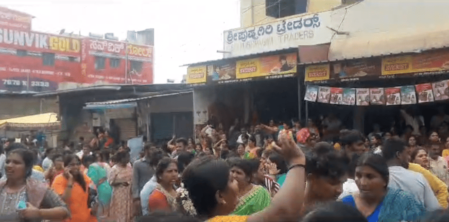 கர்நாடக மாநிலம் ஹாசன் மாவட்டத்தில் உள்ள ஹாசனாம்பா அம்மன் கோவிலில் இன்று ஆண்டு திருவிழாவிற்கு பிரம்மாண்ட ஏற்பாடுகள் செய்யப்பட்டிருந்தன ஆயிரக்கணக்கான பொதுமக்கள் வரிசையில் நின்று அம்மனை தரிசித்து கொண்டிருந்த நிலையில் கூட்டத்தை நெறிப்படுத்த அமைக்கப்பட்டு இருந்த இரும்பு தடுப்பு அரணில் திடீரென மின்சாரம் பாய்ந்தது.