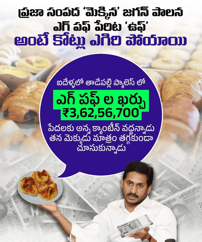 ஒரு நாளைக்கு 1000 முட்டை பப்ஸ் என்றால் தாடேபள்ளி ஜெகன் மோகன் பேலஸ் முட்டை பஃப் ஊழல் அதிர்ச்சியளிக்கிறது.