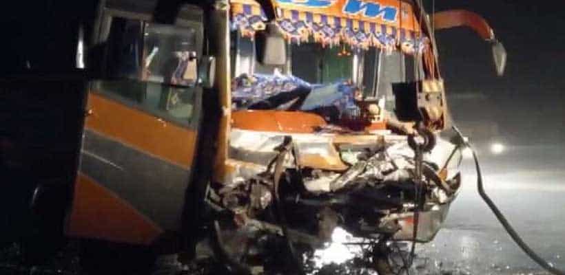 குஜராத்தின் நவ்சாரி பகுதியில் இருக்கும் அகமதாபாத் – மும்பை நெடுஞ்சாலையில் சொகுசு பேருந்தும், காரும் நேருக்கு நேர் மோதி விபத்துக்குள்ளானது. இந்த விபத்தில் கார் முற்றிலும் சிதைந்து போனது. பேருந்தின் முன்பக்கமும் பலத்த சேதமடைந்தது.