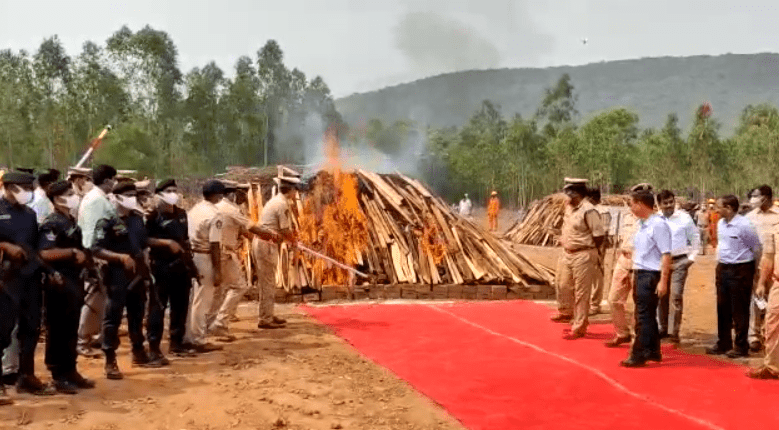 ஆந்திர மாநில டிஜிபி கௌதம் சவாங் 200 டன் கஞ்சாவுக்கு தீ வைத்தார். பின்னர் செய்தியாளர்களிடம் பேசிய அவர் கஞ்சா பயிரிடுவதை தவிர்க்குமாறு விசாகப்பட்டினம் மாவட்டத்திலுள்ள மலைவாழ் மக்களுக்கு பல்வேறு முறை வேண்டுகோள் விடுத்து இருக்கிறோம்.