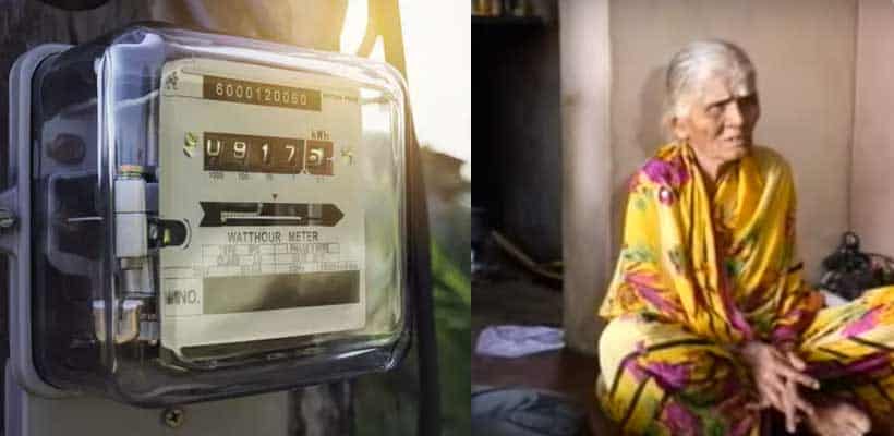 2 மின்விளக்குகளும், ஒரு மின் விசிறியும் உள்ள வீட்டிற்கு ரூ.1 லட்சம் மின் கட்டணமாக வந்திருப்பதை கேட்டு மூதாட்டி அதிர்ச்சியடைந்துள்ளார்.