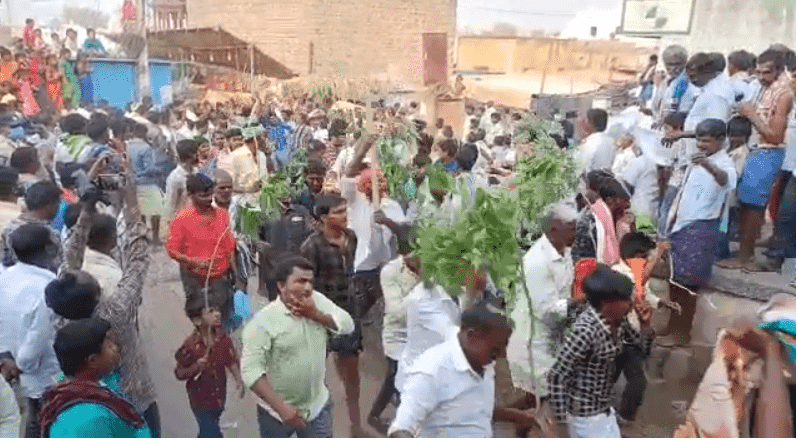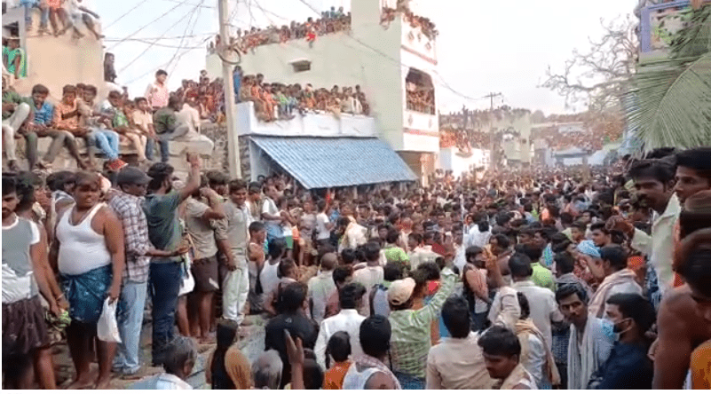 ஆந்திரா : கர்னூல் மாவட்டத்தில் உள்ள கோவில் ஒன்றில் பக்தர்கள் இரண்டு குழுக்களாக பிரிந்து ஒருவரை ஒருவர் வறட்டியால் தாக்கி கொள்ளும் வினோத திருவிழா இன்று நடைபெற்றது.