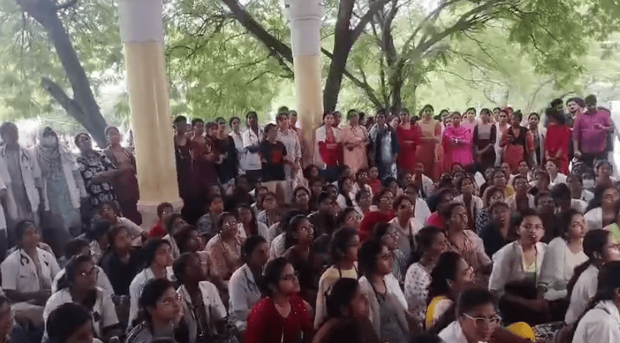 அங்கு விரைந்து சென்ற தேவஸ்தான இணை நிர்வாக அதிகாரி போராட்டத்தில் ஈடுபட்ட மருத்துவர்களுடன் பேசி பாதுகாப்பு வழங்கப்படும் என்று உறுதி அளித்தார்.