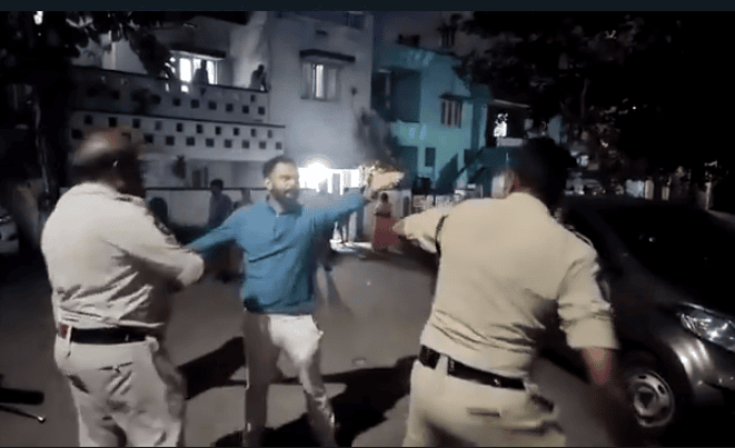 புகாரை தொடர்ந்து விசாரணை நடத்துவதற்காக வினய்குமார் வீட்டுக்கு மூன்று போலீஸார் சென்றனர். மது போதையில் இருந்த வினய் குமார் போலீசாரை தகாத வார்த்தைகளால் திட்டி அவர்களை தாக்க முயன்றார்.