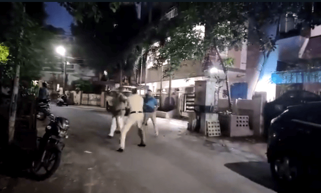 போதையில் காவலரை விரட்டி விரட்டி மூக்கை உடைத்த இளைஞர்.. தடுக்க முடியாமல் திணறிய சக போலீஸ்..!!
