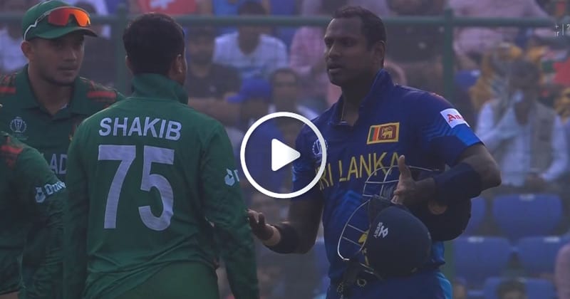 தொடர்ந்து, குஷால் மெண்டிஸ் (19), நிஷன்கா (41), சமர விக்ரமா (41) சீரான இடைவெளியில் விக்கெட்டை இழந்தனர். சமரவிக்ரமா ஆட்டமிழந்த பிறகு, 6வது விக்கெட்டுக்கு ஏஞ்சலோ மேத்யூஸ் களமிறங்கினார். கிரீஸுக்கு வந்த அவர் அணிந்திருந்த ஹெல்மேட்டின் ஸ்டிராப் அறுந்திருந்தது. இதைத் தொடர்ந்து, தனது அணியினரிடம் வேறு ஹெல்மெட்டை எடுத்து வரக் கூறினார். அதற்கு தாமதமானதால், வங்கதேச அணியின் கேப்டன் ஷகிப் உல் ஹசன், டைம்டு அவுட் கேட்டு நடுவரிடம் அப்பில் செய்தார்.