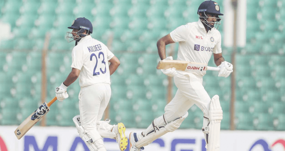 இதைத் தொடர்ந்து, 2வது நாள் ஆட்டம் தொடங்கியதும் ஸ்ரேயாஷ் ஐயர் 86 ரன்களுக்கு ஆட்டமிழந்தார். பின்னர், ஜோடி சேர்ந்த அஸ்வின் – குல்தீப் யாதவ் இணை சிறப்பாக நிதானமாக ஆடி ரன்களை சேர்த்தது. 350 ரன்களையே இந்திய அணி எட்டுமா..? என்று சந்தேகமாக இருந்த நிலையில், இருவரும் மளமளவென ரன்களை குவித்தனர்.