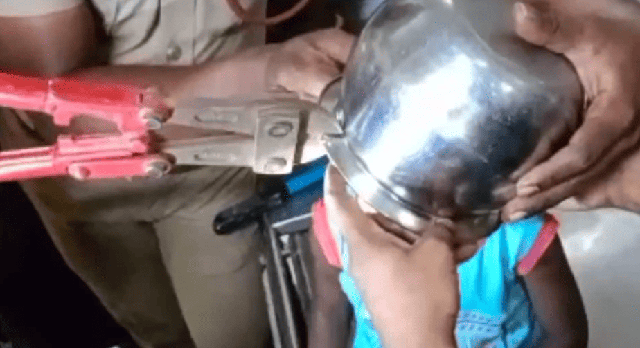 அந்த பாத்திரம் தலையில் வசமாக சிக்கிய நிலையில், அதனை எடுக்க முடியாத நிலை ஏற்பட்டுள்ளது. இதையடுத்து. சிறுவன் அலறல் சத்தம் போட்ட நிலையில், பெற்றோரும் பாத்திரத்தை எடுக்க கடுமையாக முயற்சித்துள்ளனர். ஆனால் அந்த பாத்திரத்தை எடுக்க பலரும் போராடிய நிலையிலும், அதனை அகற்றமுடியாத நிலை ஏற்பட்டது.