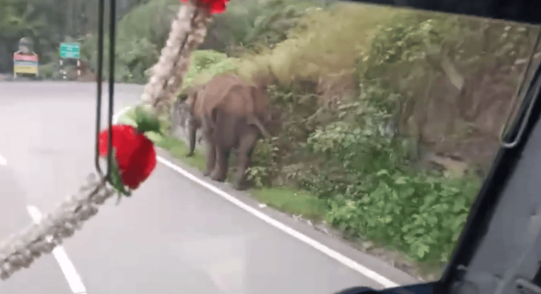 அப்பொழுது பத்தாவது கொண்டை ஊசி வளைவில் ஒற்றை யானை நிற்பதைக் கண்டு பேருந்து ஓட்டுனர் பேருந்தை திருப்பி கீழ்நோக்கி இயக்கினார்.