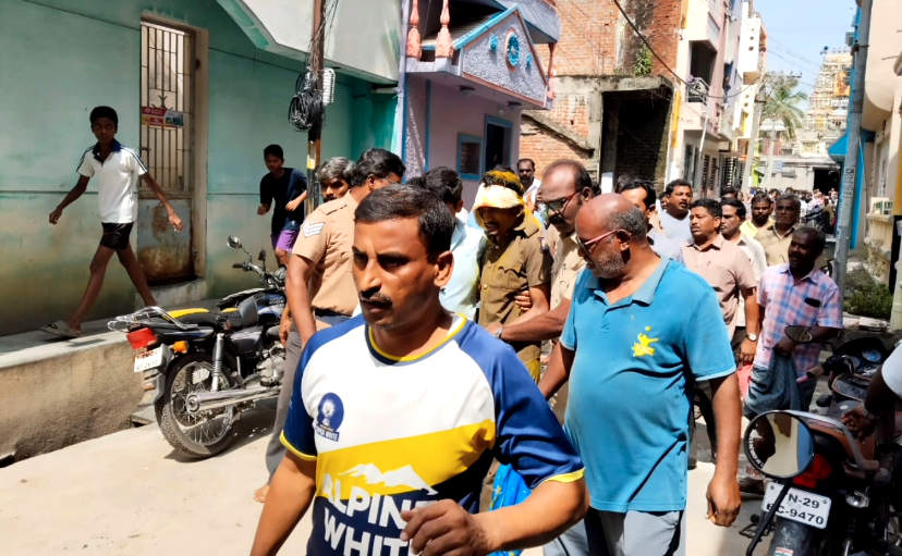 பிறகு அங்கிருந்து பொதுமக்கள் அவரை துரத்தியபோது அருகில் இருந்த குமாரசாமிபேட்டை சிவசுப்பிரமணி கோயிலில் நுழைந்தவர் கோவிலில் துப்புரவு பணியில் ஈடுபட்டிருந்த ராஜேஸ்வரி (55)என்ற பெண்ணை அரிவாளால் கொடூரமாக வெட்டி உள்ளார்.
