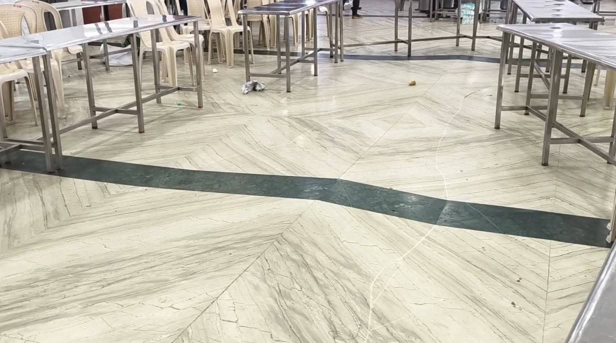 இந்நிலையில் மண்டபத்தின் ஊழியர்கள் கிரானைட் கற்கள் வெடித்த இரண்டாவது தளத்திற்கு சென்று பார்த்த பொழுது அங்கு சுமார் 20 மீட்டர் நீளத்திற்கு கிரானைட் கற்கள் வெடித்து ஒரு பகுதியை தரைத்தளம் உயர்வாகவும் வெடித்த பகுதி தாழ்வாகவும் பிளந்து இருந்தது .