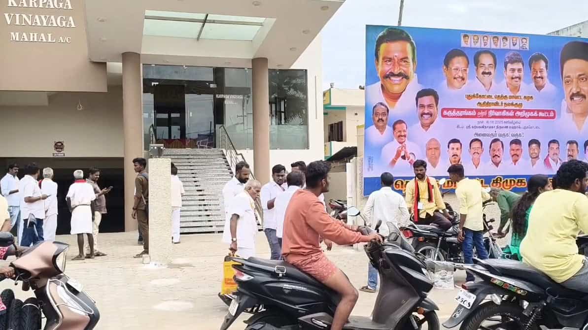 இக்கூட்டத்தில் புதுக்கோட்டை மாவட்டத்தில் இருந்து 500க்கும் மேற்பட்ட ஆதிதிராவிட நலக்குழு சேர்ந்த உறுப்பினர்கள் நிர்வாகிகள் கலந்து கொண்டனர் கூட்டம் தொடங்கி முடியும் தருவாயில் அந்த திருமண மண்டபத்தில் இரண்டாவது தளத்தில் தொண்டர்களுக்காக மதிய உணவு தயார் செய்து அதனை 300 மேற்பட்ட தொண்டர்கள் அமர்ந்து சாப்பிட்டு கொண்டிருந்தனர்.