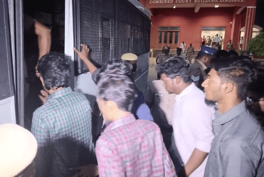 அருப்புக்கோட்டை நீதிமன்றத்தில் சரண் அடைந்த 8 பேரையும் போலீசார் திண்டுக்கல் நீதிமன்றத்திற்கு அழைத்து வந்து ஜே.எம்.2 நடுவர் மீனாட்சி முன்பு ஆஜர் படுத்தினர், 8 பேரையும் 14 நாட்கள் நீதிமன்ற காவலில் வைக்க நடுவர் உத்தரவிட்டு. மீண்டும் 04-08-2023 அன்று நீதிமன்றத்தில் ஆஜராக வேண்டும் என கூறினார், இதையடுத்து 8 பேரும் திருச்சி மத்திய சிறையில் அடைக்கப்பட்டனர்