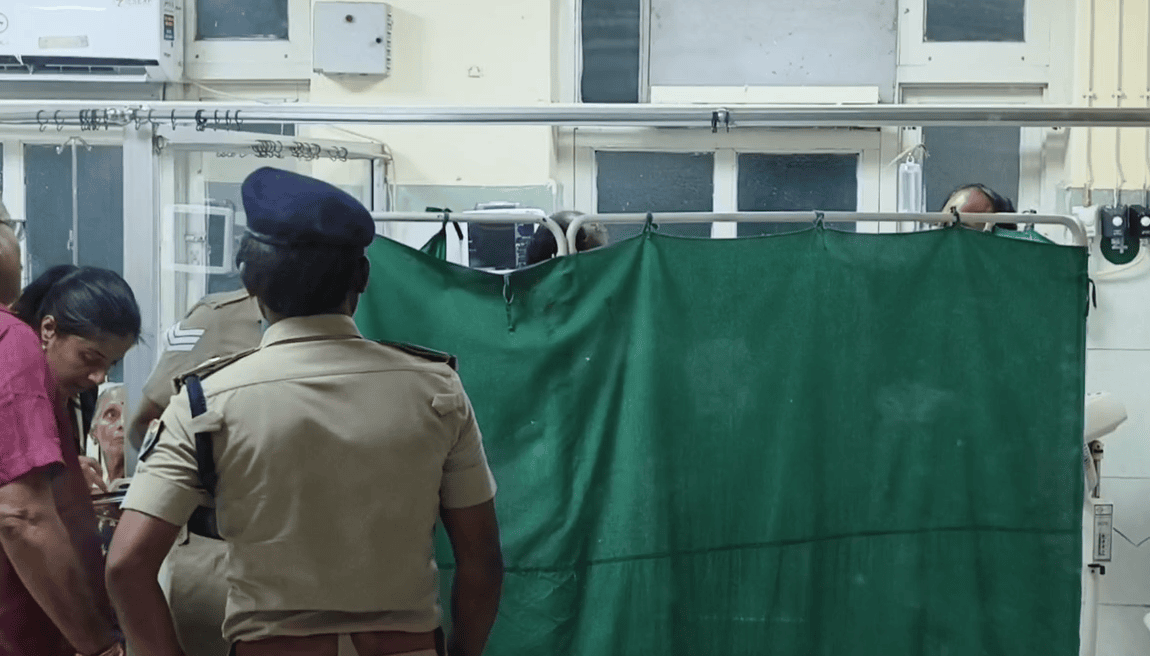 ரயில் மதுரை கூடல்நகர் பகுதியில் சிக்னலுக்காக காத்து கொண்டிருந்த போது திடீரென்று ரயில் பெட்டியில் ஏறிய இருவர் ரயில்வே பெண் கார்டு கையிலிருந்த கை பையை பறிக்க முயன்று உள்ளார்கள்.