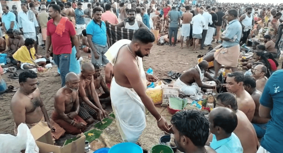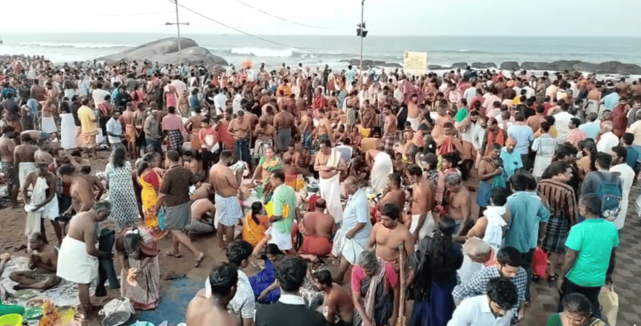 ஒரே மாதத்தில் இரண்டு அமாவாசை வந்த நிலையில், இன்று அதிக அளவில் மக்கள் தர்ப்பணம் வழங்கி வருவது குறிப்பிடத்தக்கது. மேலும் பாதுகாப்பு பணியில் ஏறாளமான போலீசார் ஈடுபட்டுள்ளனர்.
