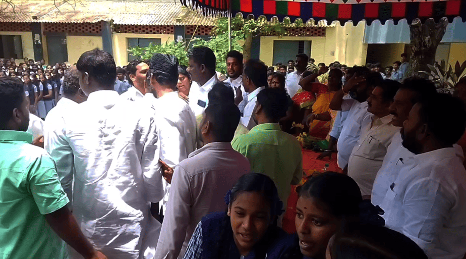 இதனால், அப்பள்ளியில் சிறிது நேரம் சலசலப்பு நிலவியது. வாக்குவாதத்தில் ஈடுபட்ட நபர்களை அமைதிப்படுத்தும் விதமாக தேசிய கீதம் பாடப்பட்டது. அதனையும், பொருட்படுத்தாமல் வாக்குவாதத்தில் ஈடுபட்டதால் அங்கு பரபரப்பு நிலவியது.