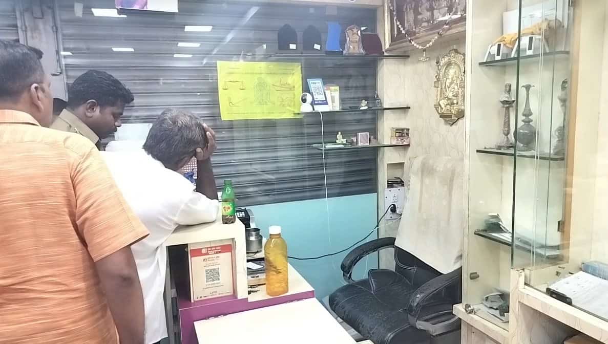 தொடர்ந்து டிராவில் இருந்த 80 சவரன் நகையும் கொள்ளையடிக்க முயன்றனர். சுதாரித்துக் கொண்ட கடை உரிமையாளர் வைத்தீஸ்வரன் அந்த நகைகளை பிடுங்கி போது ஆசிட் ஊற்றியும் துப்பாக்கியை காட்டி மிரட்டி அவர்கள் ஓட முயற்சித்தனர். அதில் ஒருவரை கடை உரிமையாளர் மடக்கிப்பிடித்தார்.