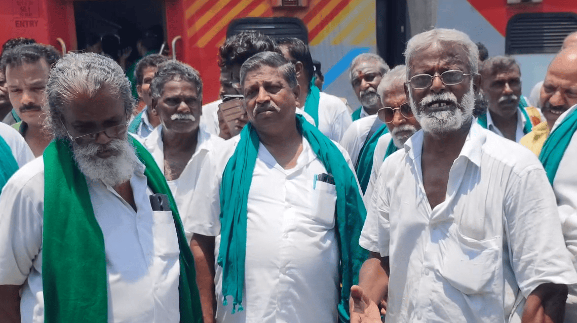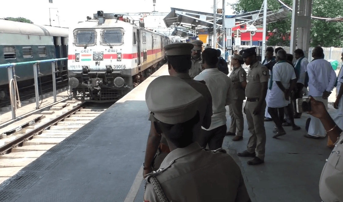பனாரஸ் எக்ஸ்பிரஸ் ரயிலின் அபாய சங்கிலியை இழுத்து ரயிலை நிறுத்திய அய்யாகண்ணு : 45 நிமிடமாக போராட்டம்!!