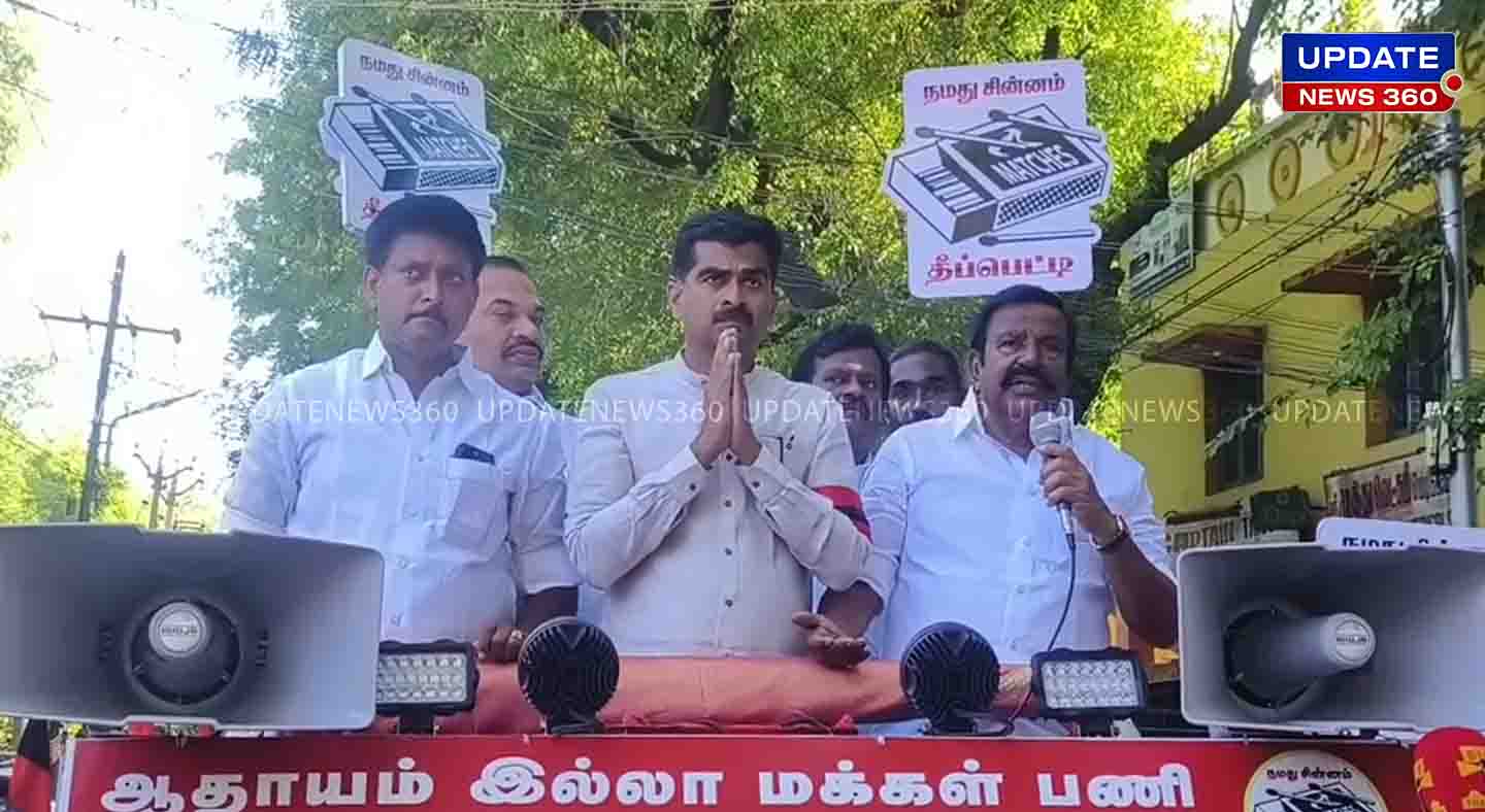 மாநிலத்திற்கு தேவையான நிதிகளை தராமல் மாநில வளர்ச்சிக்கு தடையாக இருக்கிற . ஒன்றிய அரசை நீக்கிட தேர்தல் நெருங்கியவுடன் மாதத்திற்கு 4முறை தமிழகத்திற்கு வருகின்ற பாரதிய ஜனதா தலைவர்கள் தமிழகத்தில் ரோட்ஷோக்கலை நடத்தி வருகின்றனர். அவர்கள் ரோடு ஷோவை நடத்துவது மட்டுமே அவர்களது வாடிக்கையாக இருந்து கொண்டிருக்கிறது எனவே திட்டங்களைக் கொண்டு வர தீப்பெட்டி சின்னத்தில் வாக்களிக்கும் வேண்டும் என்றார்.