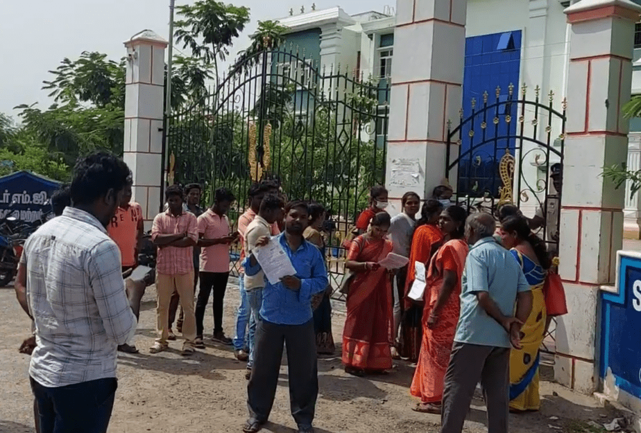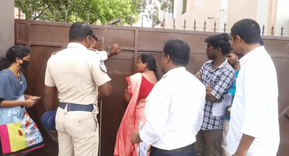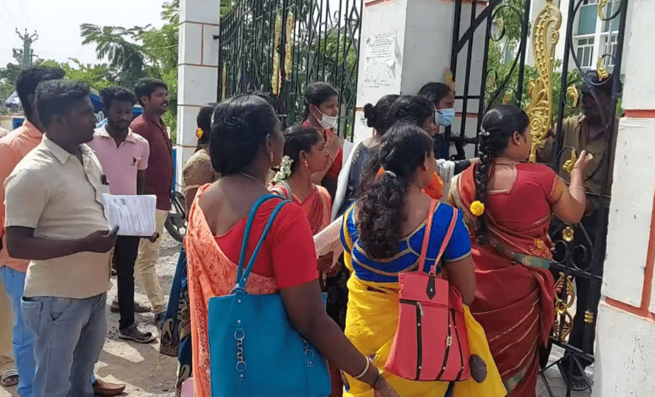 குரூப் 4 தேர்வெழுத லேட்டாக வந்த தேர்வர்கள்.. அனுமதி மறுக்கப்பட்டதால் கேட்டுகளை உடைத்து வாக்குவாதம் : போலீசார் குவிப்பு!!