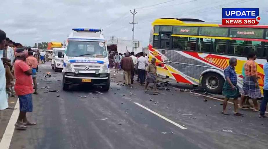 திருப்பூர் மாவட்டம் தாராபுரம் அடுத்த கொடுவாய் அருகே காரும் பேருந்தும் நேருக்கு நேர் மோதி விபத்துக்குள்ளானதில் 4 பேர் உயிரிழந்தனர்.