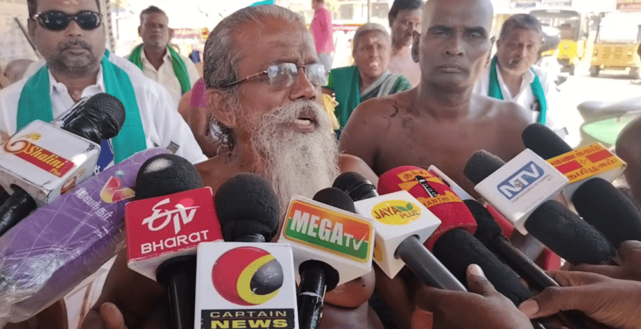 தொடர்ந்து செய்தியாளர்களுக்கு அய்யாகண்ணு பேட்டி அளித்ததாவது :- தமிழகம் ஒரு விவசாய பூமி. கர்நாடக அரசு தண்ணீர் திறக்க மறுத்து வருகிறது. மத்திய அரசு தமிழக அரசு விவசாயிகளுக்கு மொட்டை அடித்து விட்டது. மாநில சர்க்கார் இதனை பார்த்துக் கொண்டிருக்கிறது..