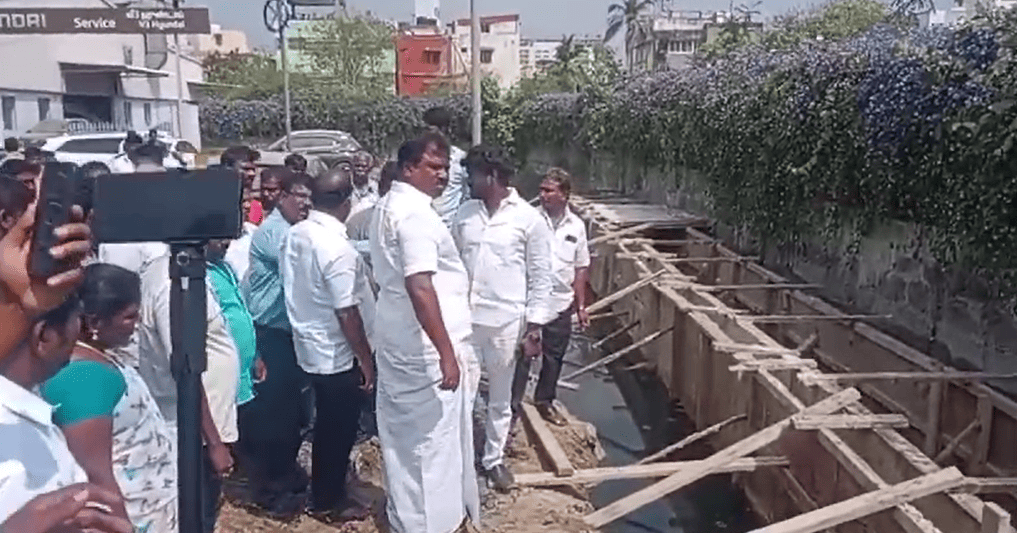 சென்னை பெருங்குடி பர்மா காலனி திருவள்ளுவர் நகர் 10வது தெருவில் அரியண்ட் பில்டர்ஸ் நிறுவனம் தரைதளம் மற்றும் 4 அடுக்கில் கட்டுமான பணியில் ஈடுபட்டு வருகிறது. இதற்காக சுமார் 15 அடி ஆழத்திற்கு குழி தோண்டி உள்ளனர்.