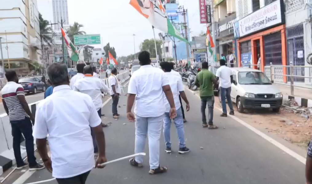காங்கிரஸ் கொடிகளை பாஜகவினர் எரித்தனர். அதை தடுக்க வந்த போலீசாருக்கும் பாஜகவினருக்கும் தள்ளுமுள்ளு ஏற்பட்டது தாக்குதலில் காயம்பட்ட இளைஞர் காங்கிரஸ் தேசிய பொதுசெயலாளர் லாரன்ஸ் மற்றும் பாஜக சக்திகேந்திரா கோட்ட பொருளாளர் கிருஷ்ணன் ஆகிய இருவர் 2 பேர் மருத்துவமனையில் சிகிச்சை பெற்று வருகின்றனர்.