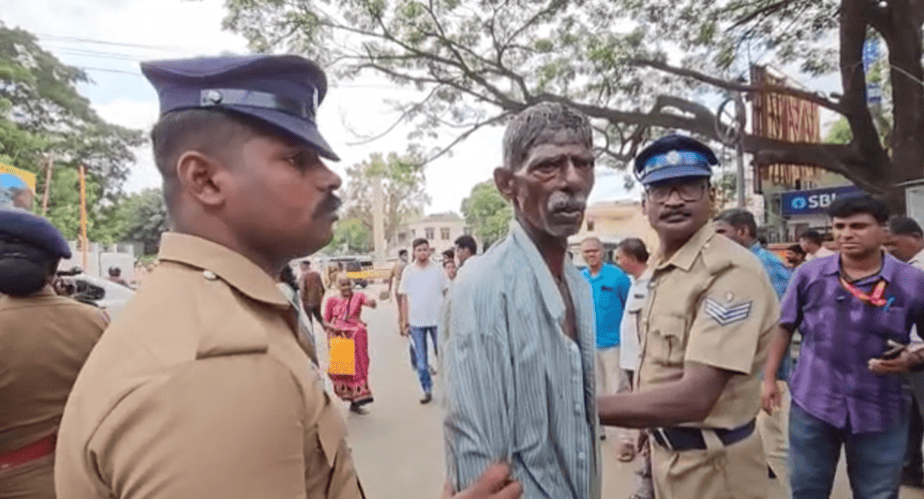 பின்னர், இது சம்பந்தமாக விசாரிப்பதற்காக அவரை காவல் நிலையம் அழைத்து சென்றனர். இச்சம்பவத்தால் மாவட்ட ஆட்சியர் அலுவலகம் முன்பு சிறிது நேரம் பரபரப்பான சூழல் நிலவியது.