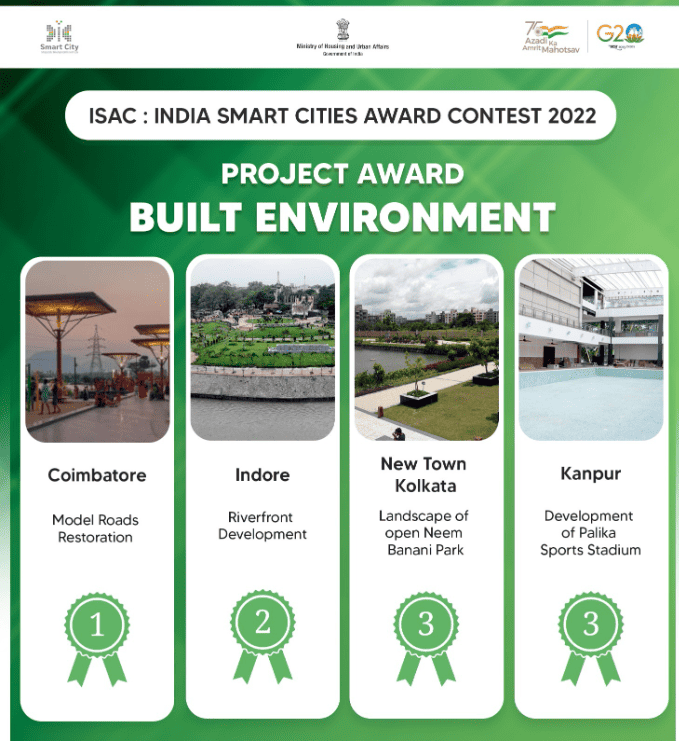 அந்த வகையில், இந்த ஆண்டுக்கான விருதுகள் அறிவிக்கப்பட்டுள்ளது. இந்திய ஸ்மார்ட் சிட்டி விருது 2022-ல் சுற்றுச்சூழல் கட்டமைப்பு பிரிவில் கோவை மாநகராட்சி முதலிடம் பிடித்துள்ளது.